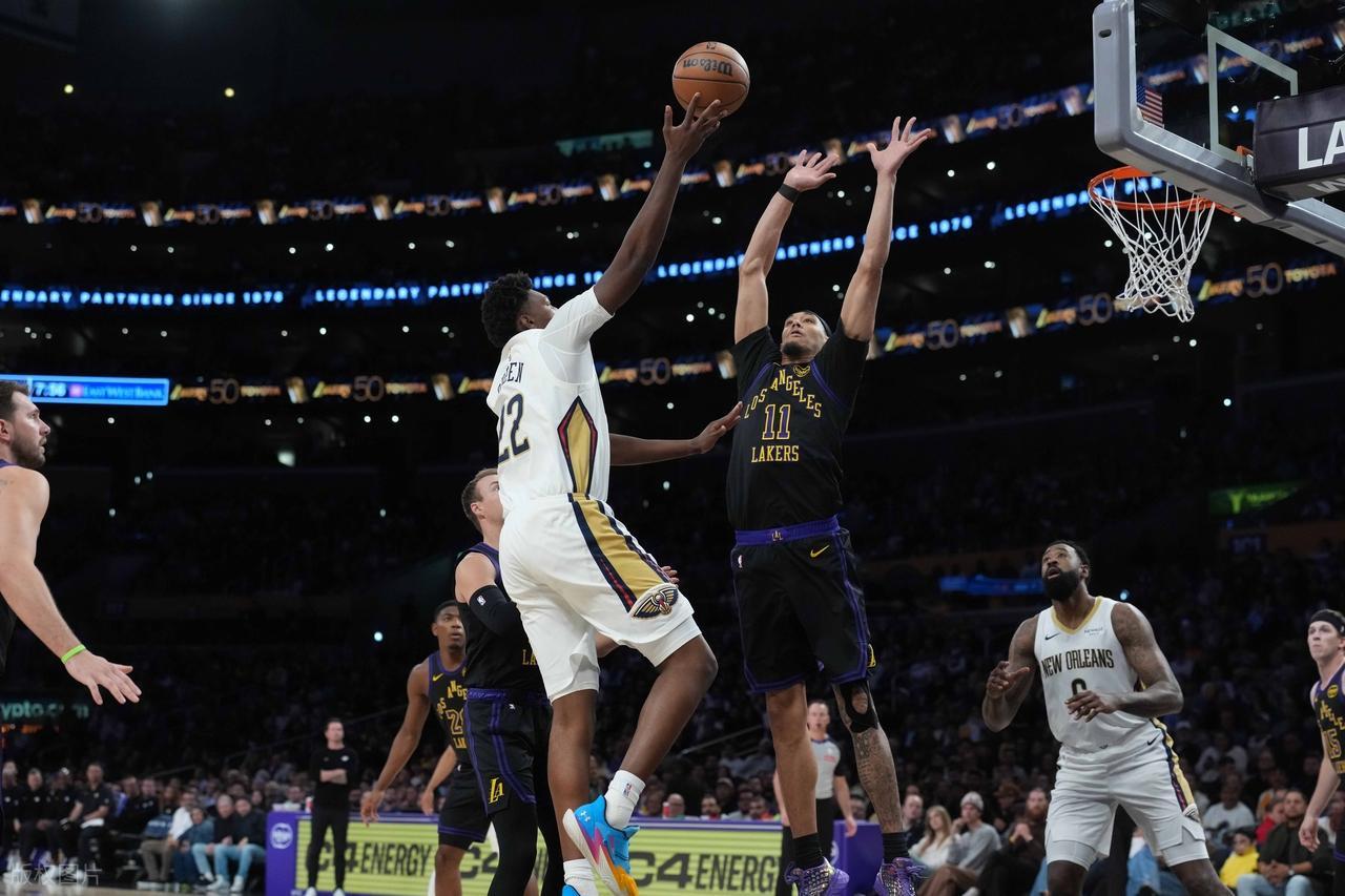 首节开局,东契奇上来先进三分,墨菲立马回应一个,双方你来我往比分交替上升,一直到20-19以后,进入第一个暂停。暂停以后,两队还是打得难解难分,鹈鹕一度领先到了5分,但湖人外线三分连中反超回来。小乔丹空接暴扣,鹈鹕反击4打1,33-31领先2分结束第一节。