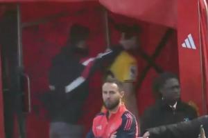 体育资讯4月21日讯 曼联0-1不敌狼队赛后,眼尖的曼联球迷拍摄到,阿莫林与今夏的转会目标库尼亚进行了交谈。